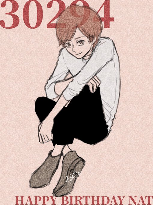 いっけなーい、遅刻遅刻!🥪😣💦 ナット公表後初の誕生日おめでとう〜〜!🎉 ファンブックの「やや華奢」の一言に萌えて生産された薄着絵なんですが、12月なのにごめんよ…… #30294ナット誕生祭2020