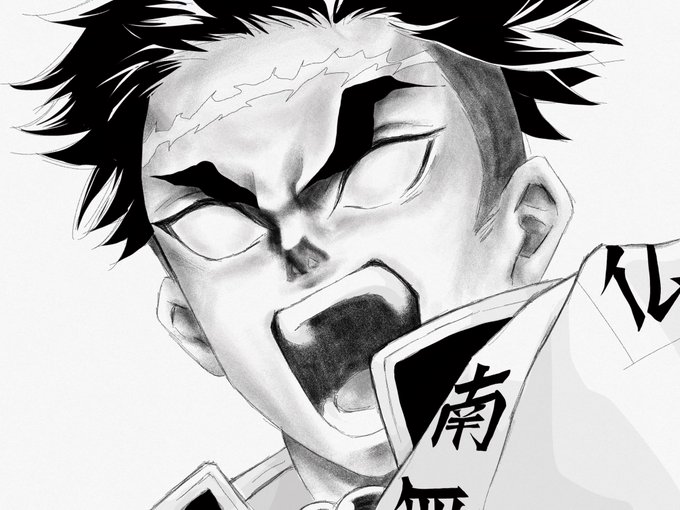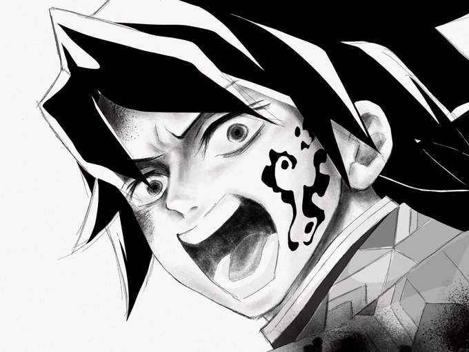 「村田ーーー!!」 声が小さい事で有名な水柱様が声を張る。柱=段違いに格上ってイメージでしたが、そういう隔りを全く感じないというか、同志とか仲間ってことを強く感じてぐっとくる、好きなシーン。 #冨岡義勇 #鬼滅の刃イラスト