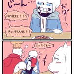 50 164 リクエストBOXの「TPルート後、マッマに料理を教えてもらっているパピルスと茶々を入れるサンズ、完成したスパゲッティを食べるサンズに声をかけるパピルス」です!ありがとうございました! 17/06/10 15:27
