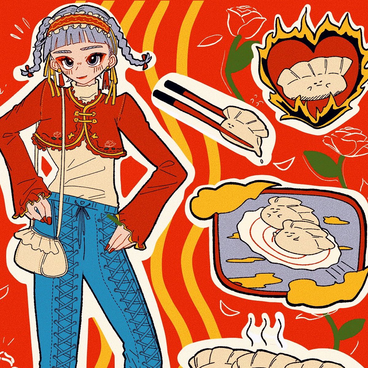 どれ頼んでも、もれなく全て熱々よ?💋🍜 #創作 #絵柄が好みって人がいたらいいなぁ