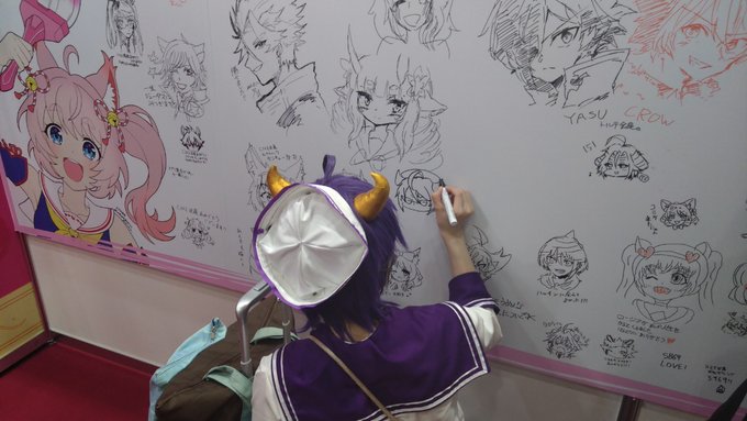 ボード記入バイソンのお写真頂きました……ぜんぜん……気付かなかった✍️ SB69ブース展示もボードも良かったなあ!!マジで家の壁紙全部あのクソデカ等身セーラー絵にしたい また、出展……たのむよ twitter.com/omiso_cos/stat…