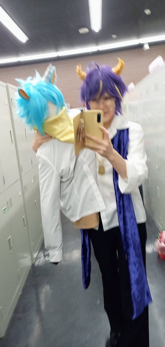 夜中にこっそりかまちょしたのに結構頂いててありがとうございます こすピュ3日間中、複数人に「あの限界推しカプ合わせ好きです」って言って頂けたのでヘッドマネキンと合わせをした限界推しカプ厨見てください 同情するな!同情するならチタンをくれ 衣装とウィッグは用意するから twitter.com/omiso_cos/stat…