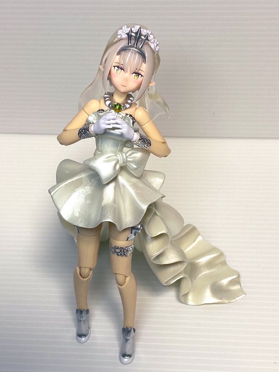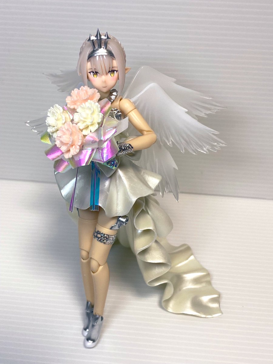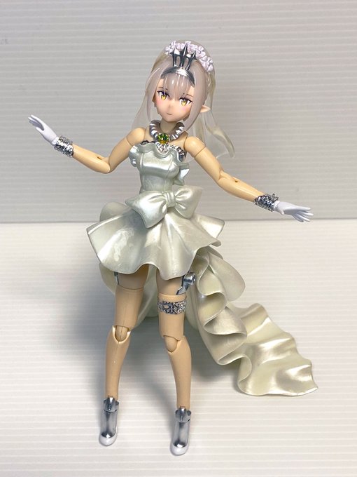 うちの子ワイスのシャロさんの第2の装備が完成しました! 礼装 ジューンブライド 今月中は無敵です(*´ω`*) #メガミデバイス と #FAガール とプライズフィギュアを組み合わせました。 「マスター、出逢ってくれてありがとうございます」 #めっちゃええでるわいす