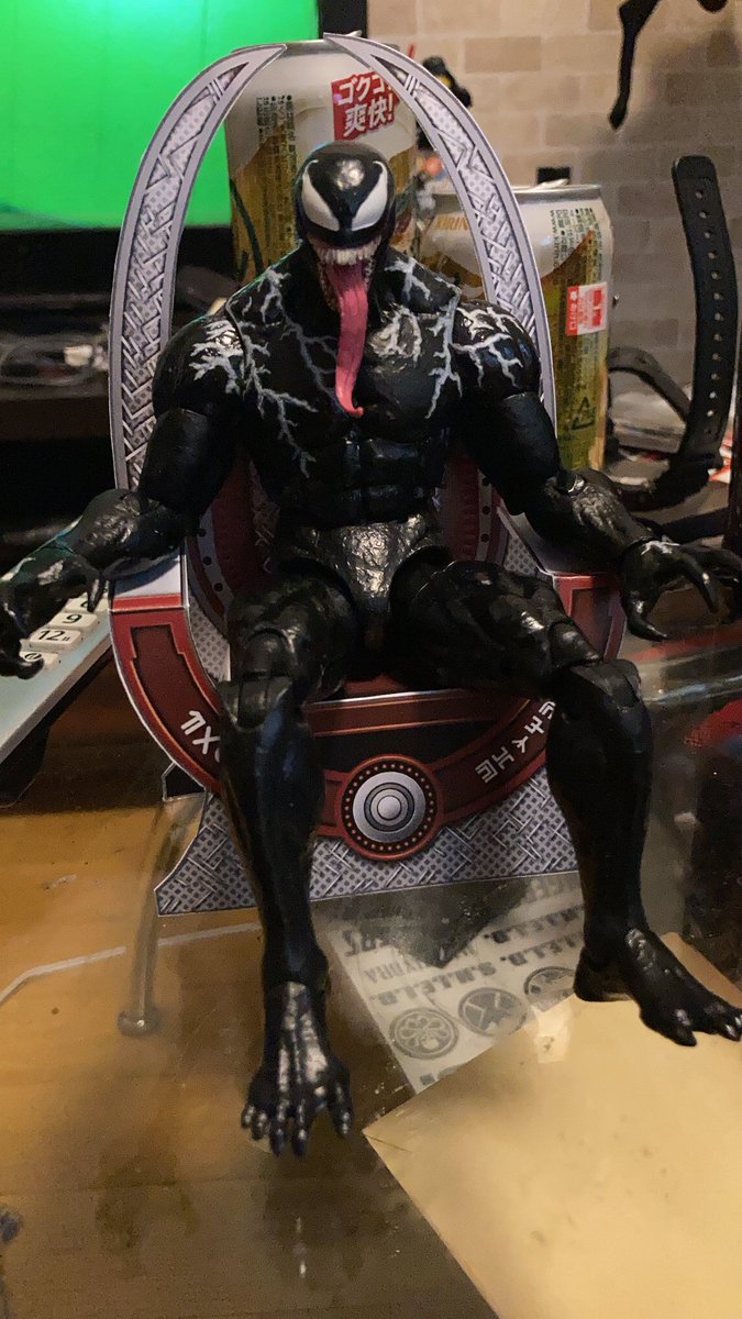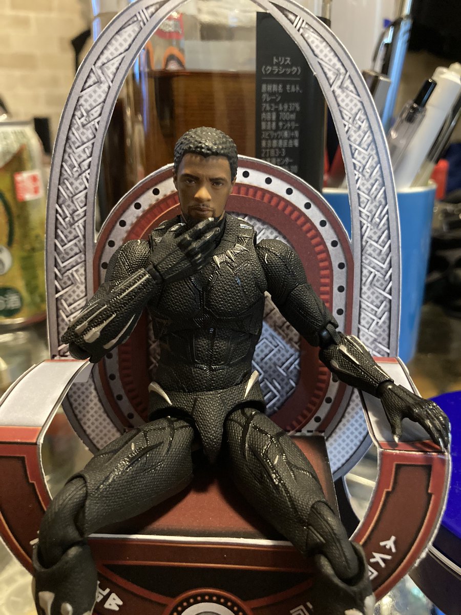 MAFEXブラックパンサー 陛下… ありがとうございます 最高です… 悲しいけど…😭 スタンリー尊師の隣に飾らせて頂きます ヴェノムは立たせておきます #オモ写 #MAFEX #WakandaForever