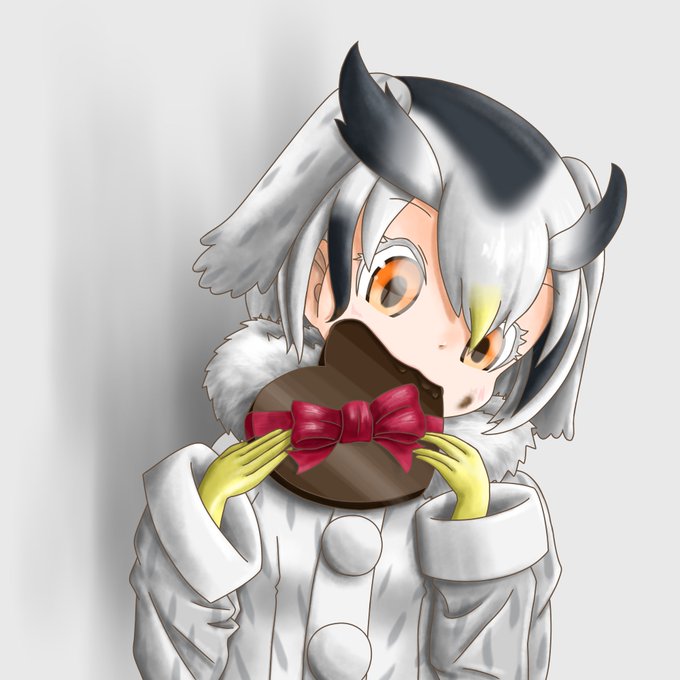 バレンタインなので デカいチョコを喰らうコノハ博士を描きました! #けものフレンズ