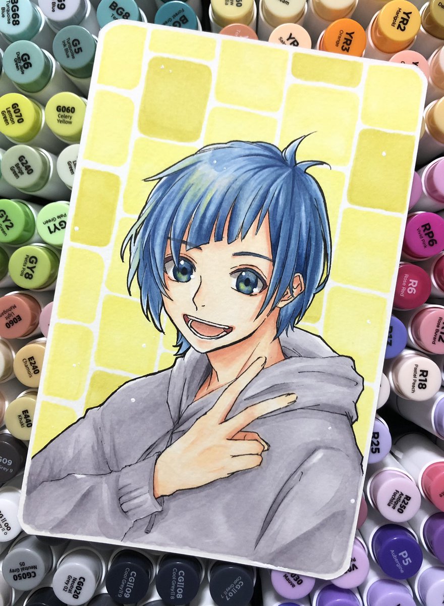 LIP×LIP 勇次郎くん描きました! ヤマコさんのイラストはどの子も本当に素敵でたまらん🥰 マーカーで仕上げた最初のイラストだったけど、良さげにまとめられてよかったあ🦦 #絵描きさんと繋がりたい #イラスト好きな人と繋がりたい #HoneyWorks