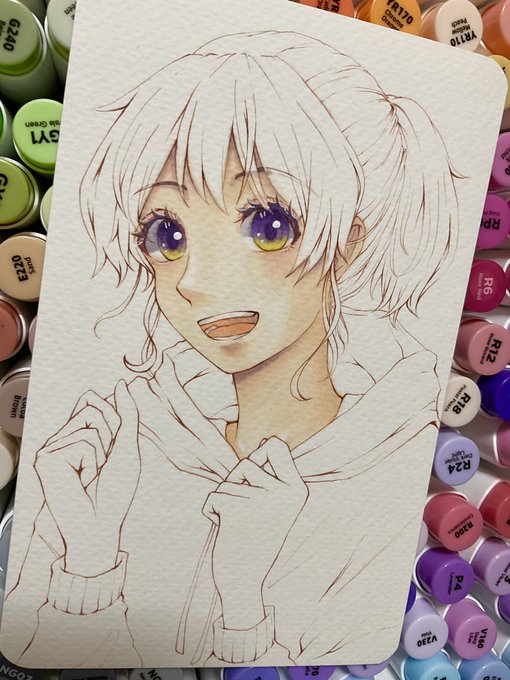 お顔塗った〜! 顔パーツのバランスがいまいちだったけど、めげずに最後まで塗ります🥲 #イラスト #illustration #イラスト好きな人と繋がりたい #絵描きさんと繋がりたい #コピック #女の子イラスト #絵描きさんフォロバ100
