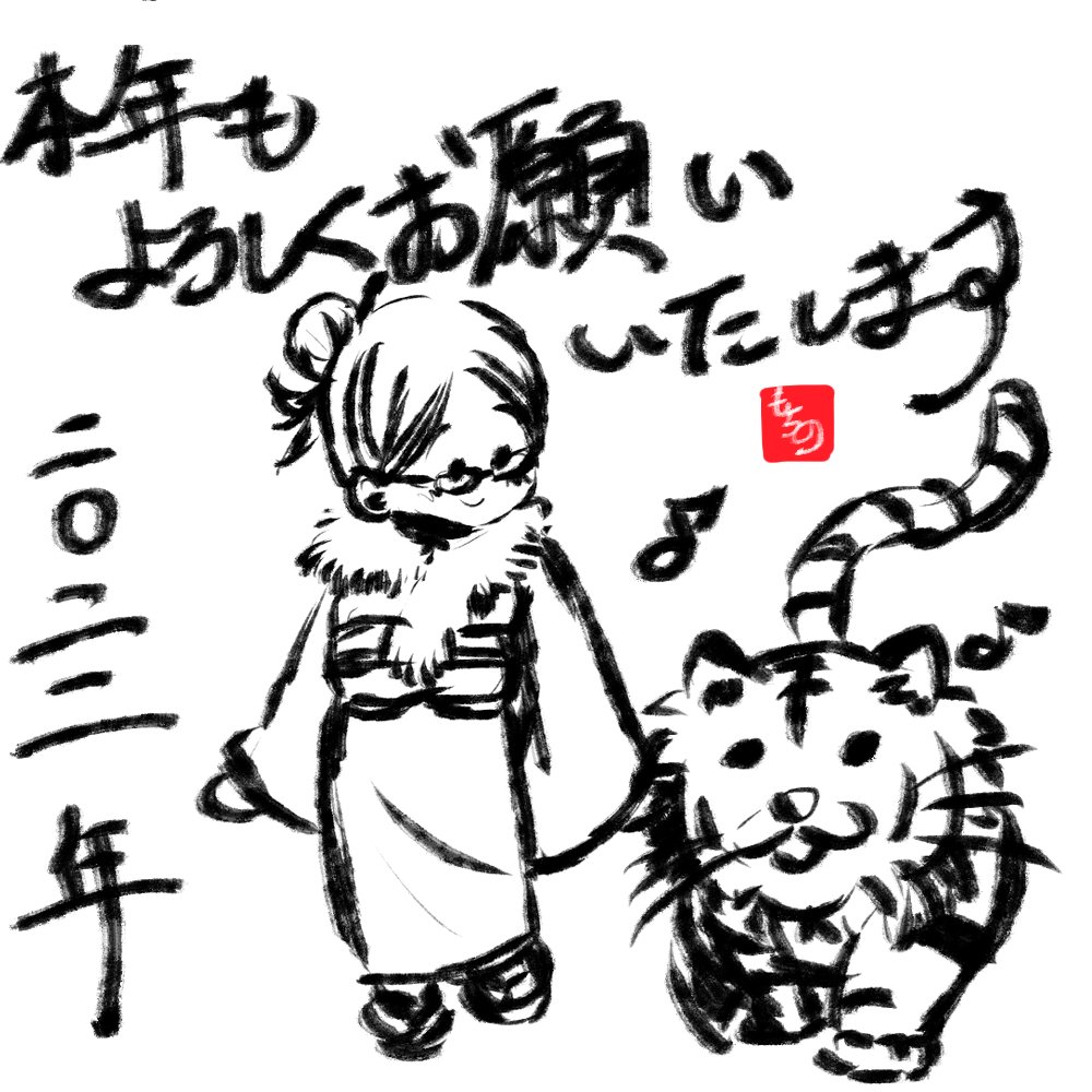 遅れましたが明けましておめでとうございます! 今年もゆるりと頑張って参りますので、よろしくお願いいたします☺ 墨ツールで書初めっぽく! #イラスト #ゆるいイラスト #絵描きさんと繋がりたい