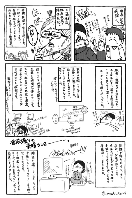 コロナにかかってあれっやこれや…の続きです。 診察から待機(隔離)期間終了編。 症状等のメインのお話はこれで終了ですが、この隔離期間にあった小話をあと少しまとめられればいいなと思っています。 #漫画が読めるハッシュタグ #エッセイ漫画