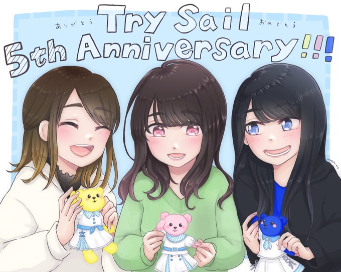 遅くなってしまいましたが、おめでとうとありがとうと大好きの気持ちはいつだって変わらないので!描きました〜! 早く3人に会いたいな。5周年本当におめでとうございます!△△△ #TrySail5周年記念日