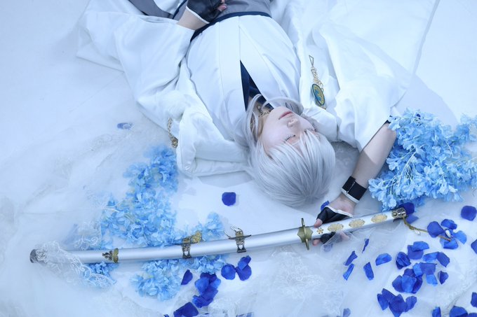 ※Cosplay 大遅刻(白目) おめでとう鶴丸〜🌸🌸 #鶴丸国永献上記念日 #鶴丸国永献上記念日2022 photo. @CGioz @samidare_syumi