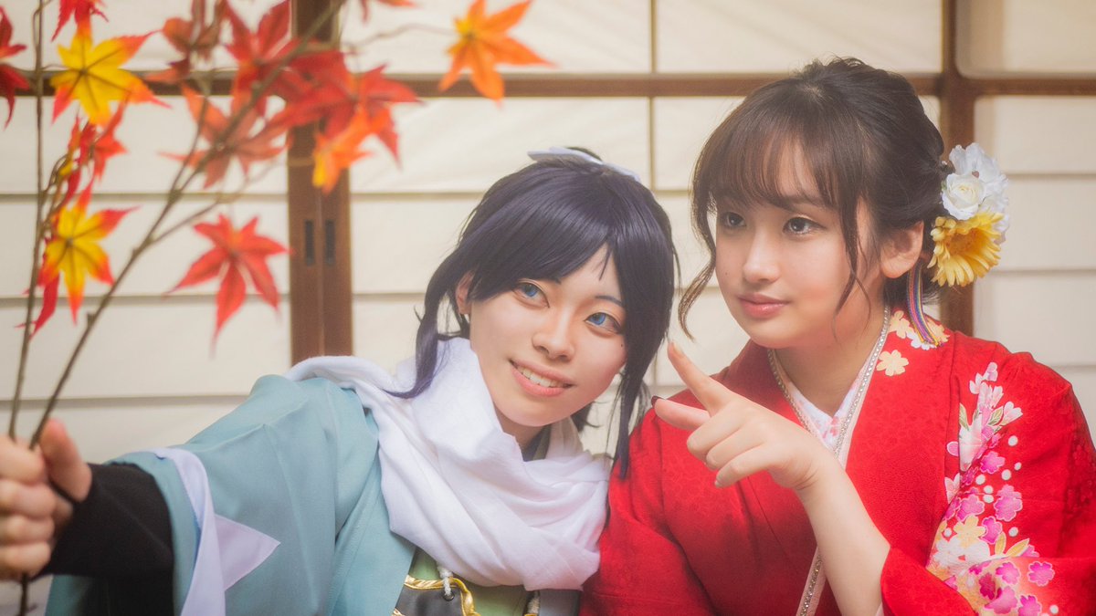 ※Cosplay 刀剣乱舞 大和守安定 「見て主、主の振袖と同じ色だよ!」 🍁@sumomo_8714 📸@uri_nashi