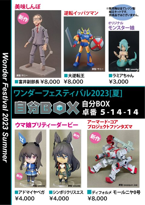 イベント直前となりますが ディーラー自分BOXの ワンダーフェスティバル2023夏のお品書きです。 当日は感染症及び熱中症対策をしてお会いしましょう。 宜しくお願いします。 #WF2023S