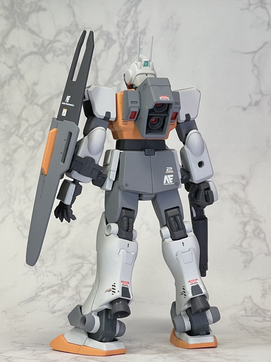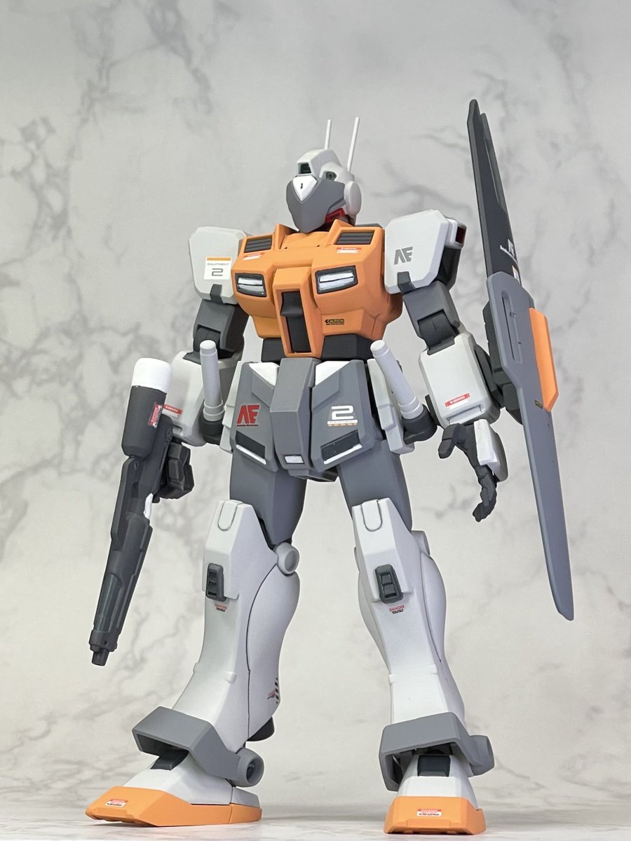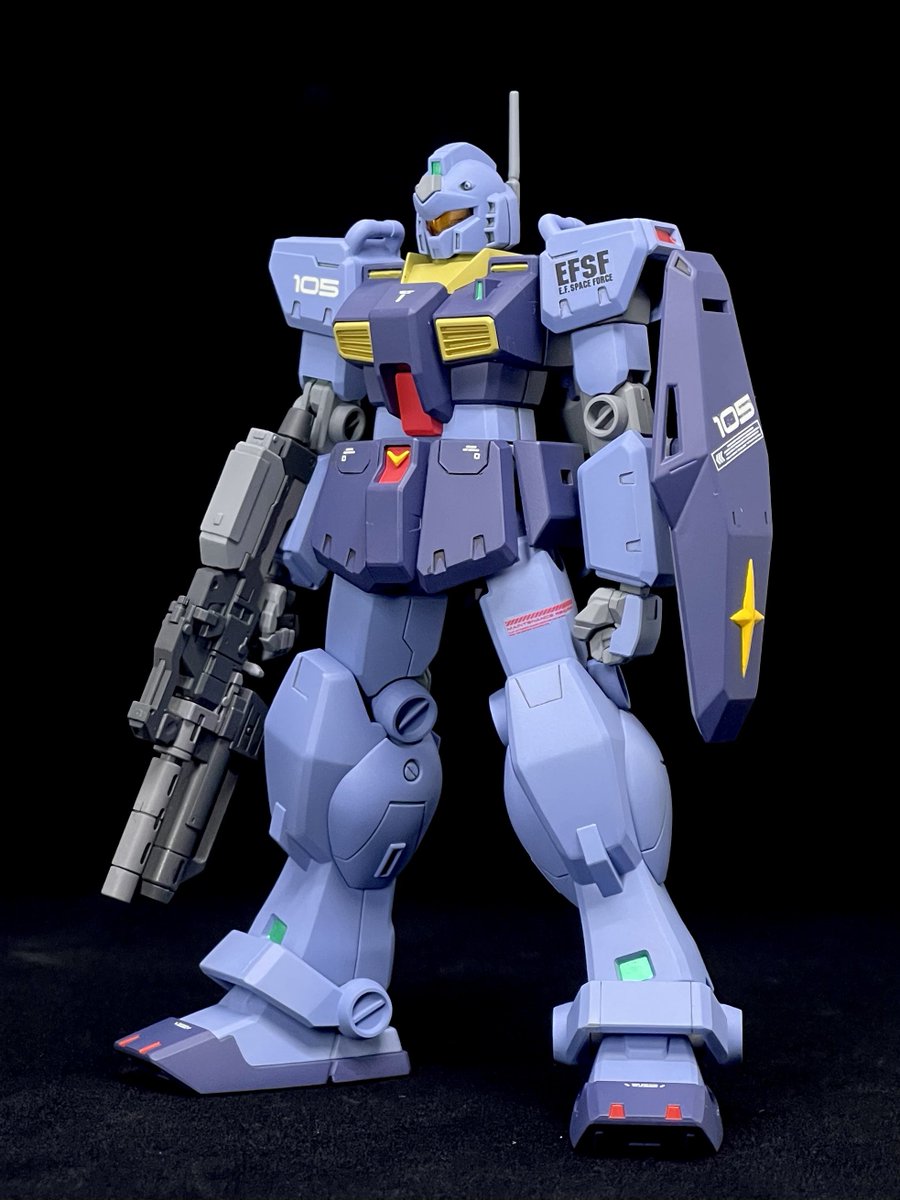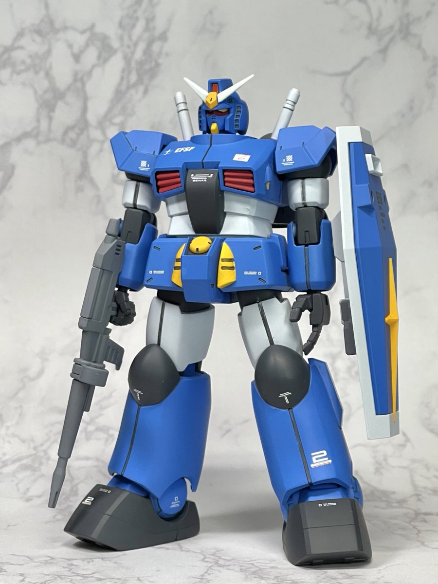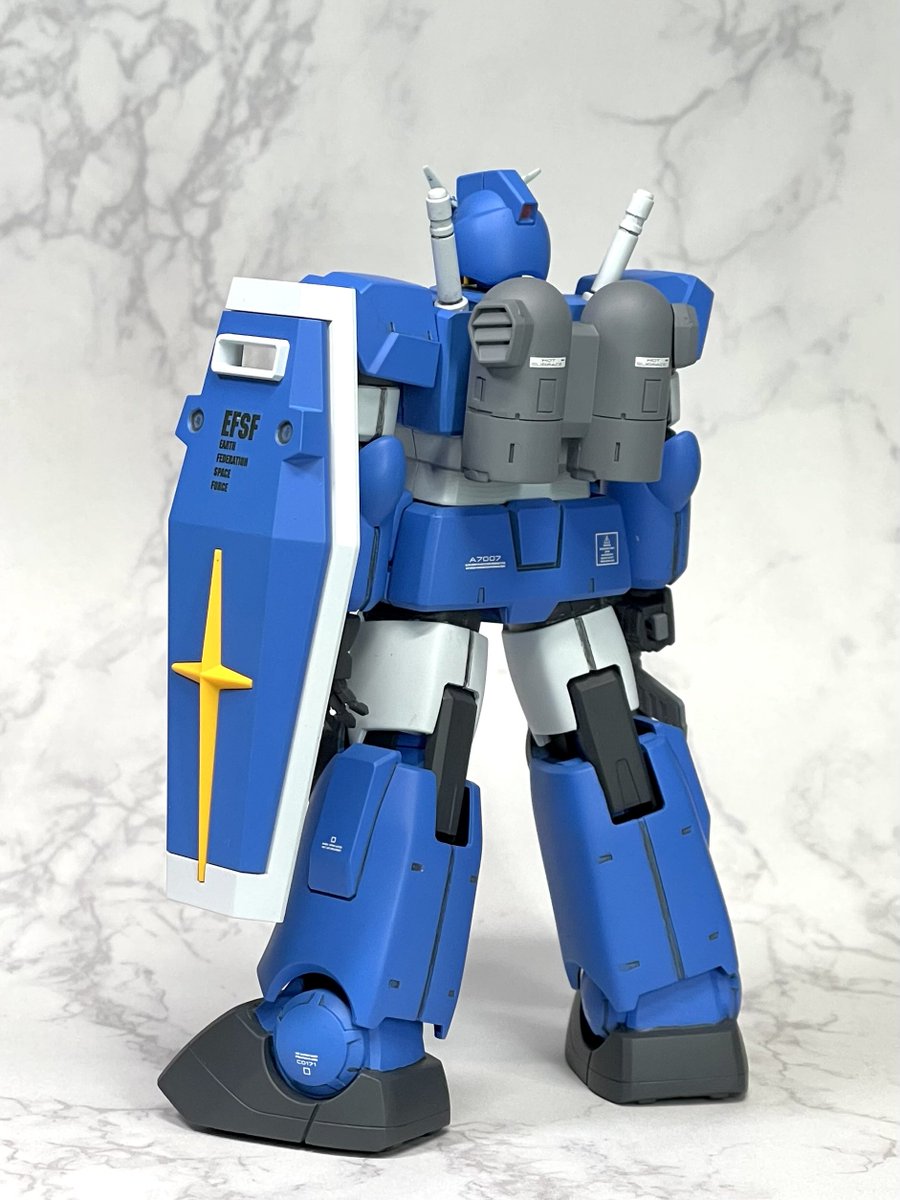 59 280 ジムD型フェイス・ハイダー完成しました。アナハイムがグリプス戦役に合わせエゥーゴの次期量産機用に開発したテスト機の内の一機です。後にSPベースの機体もテストされています。トップコートにクレオスの水性UVカットスムースクリアーを使用してみましたがこれは良いものですね。 #ガンプラ 22/12/16 22:25