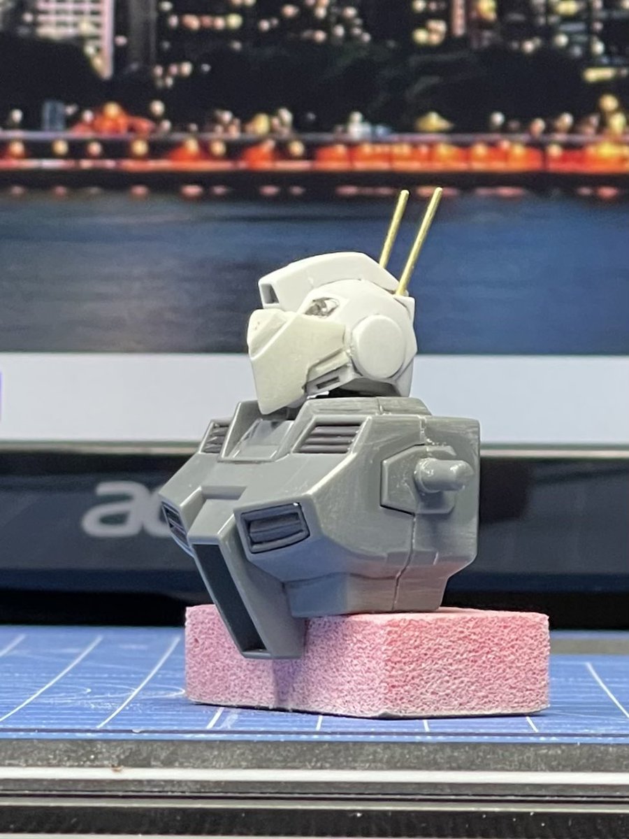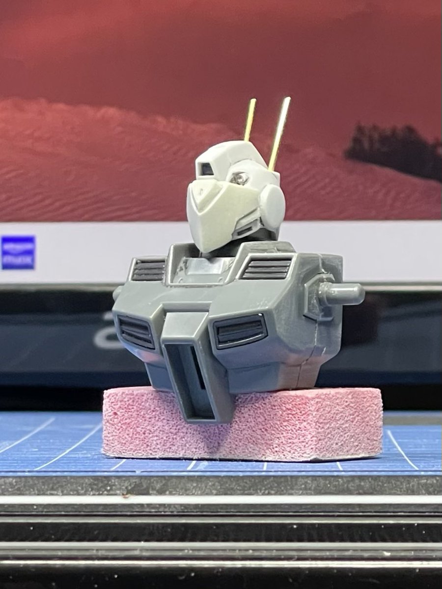 ジムD型フェイス・ハイダーのマスクを削り出しました。カラーはネモに寄せるか本家の白にするか悩みますね。 #ガンプラ