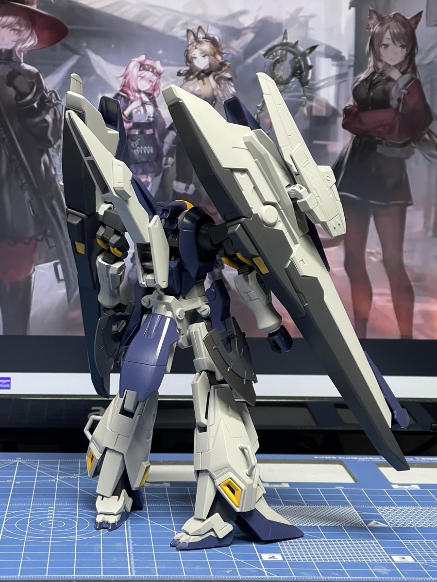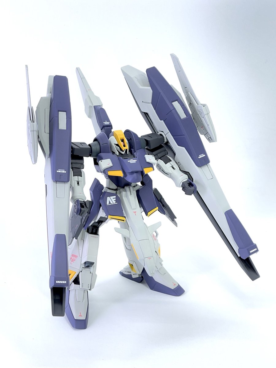 193 837 シュツルム・ギャプラン完成です。グリプス戦役後引き上げられたティターンズ系機体をアナハイムが一部押収し自社技術との融合を図ったもの。オークランド及びオーガスタ研究所員からは「AEは何でも自分が作った事にする」と誹謗される。しかしカラーはトレーナー色を継承し尊重している。 #ガンプラ 23/02/07 21:27