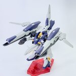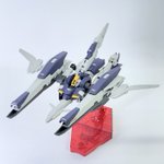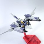他アングルから。リスペクト元機体と同じく本来は逆関節。地上での歩行性能は劣悪で飛行形態が本来の姿となります。某テストチームのカラーとは似て非なるものです。兎に角可変機の改造は大変でした。 #ガンプラ