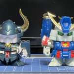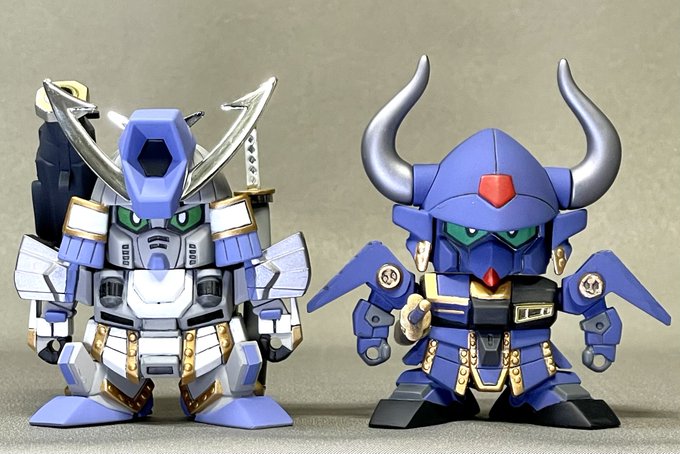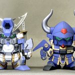 43 257 武者プロトMK-Ⅱと武者FAZZ完成です。2体で20円の中古品をさっくり作りました。欠品部分はプラ板等でアレンジして足の接続位置をいじっています。 #SDガンダム #ガンプラ 23/03/05 23:22