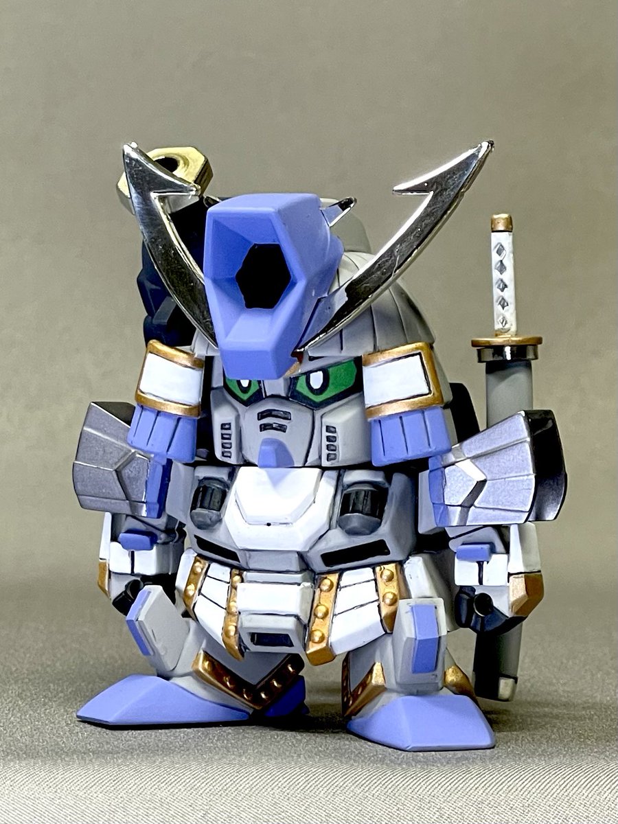 写真は忘れましたが刀と軽装頭も一応塗りました。足の付け根をいじるだけで大分印象が変わりますね。20円でかなり楽しめました。積みも崩さねば… #SDガンダム #ガンプラ
