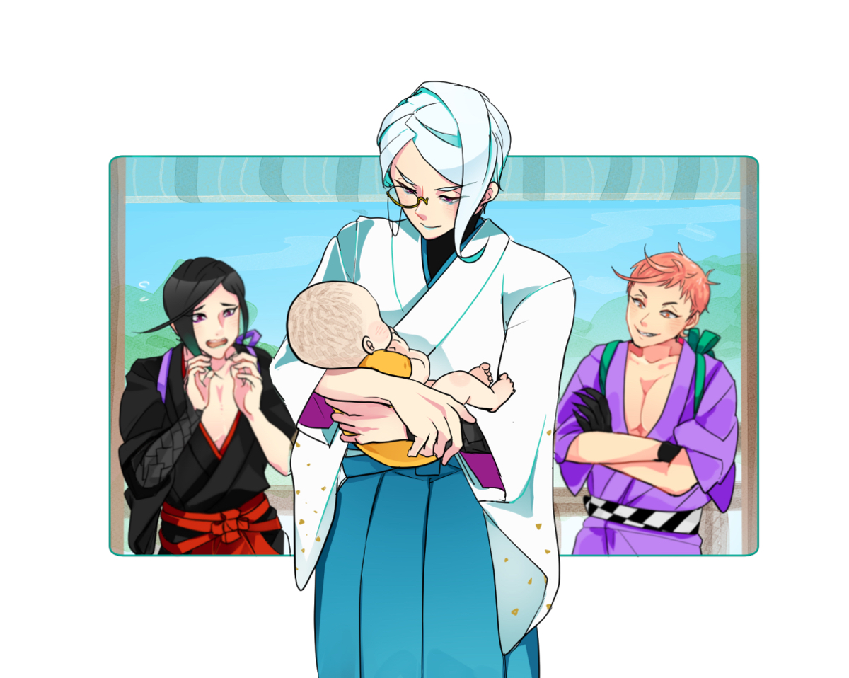 TLが長義くんであふれる中、三名槍の仲良しアクスタセットがあればいいなと思って描きました。
