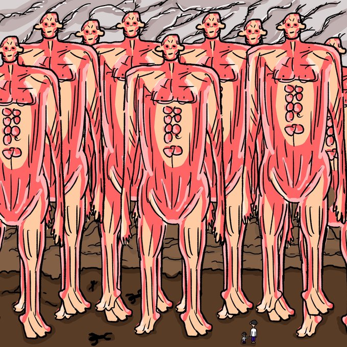 1 4 地鳴らし(再掲) #進撃の巨人 #地鳴らし #イラスト #illustration #comic #manga 23/03/04 00:31