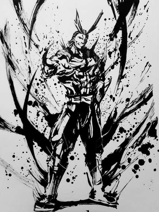 33 275 オールマイト描いたっ!! すごい時間かかったけどその分 楽しかった😆✨ #みんなで描くモノクロイラスト #僕のヒーローアカデミア #模写 21/07/17 07:00