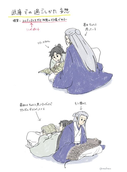 48 318 またらくがき 天窗抜けた途端に品のない言葉使いまくってたぐらいなので、素がヤンチャである可能性を信じたい そこで温の前でだけは(←重要)すごい行儀悪い周ならいいのにというご提案です あの綺麗な顔でお行儀悪いの絶品じゃないすか😌 そして元鬼谷谷主なのにキチンとしている温も美味 23/01/30 00:57