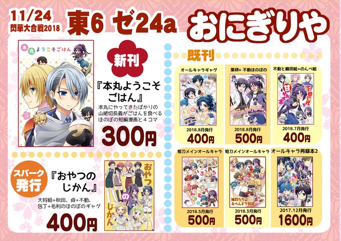 【11月閃華】おしながき | オムスビ【11/24ゼ24a】 #pixiv pixiv.net/member_illust.… :おしながきをアップしました。新刊は長義くんとオールキャラ本です~!