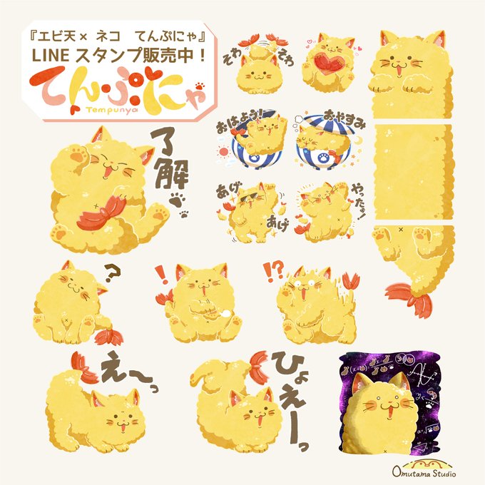 LINEスタンプ『エビ天×ネコ てんぷにゃ【冬・年末年始】』をリリースしました!トークルームで猫のような架空生物を飼いたい方におすすめです🍤(揚げ卵みたいなヒヨコたちもいます) #てんぷにゃ #イラスト #ゆるいイラスト #illustration #LINEスタンプ LINE STORE URL: line.me/S/sticker/2160…