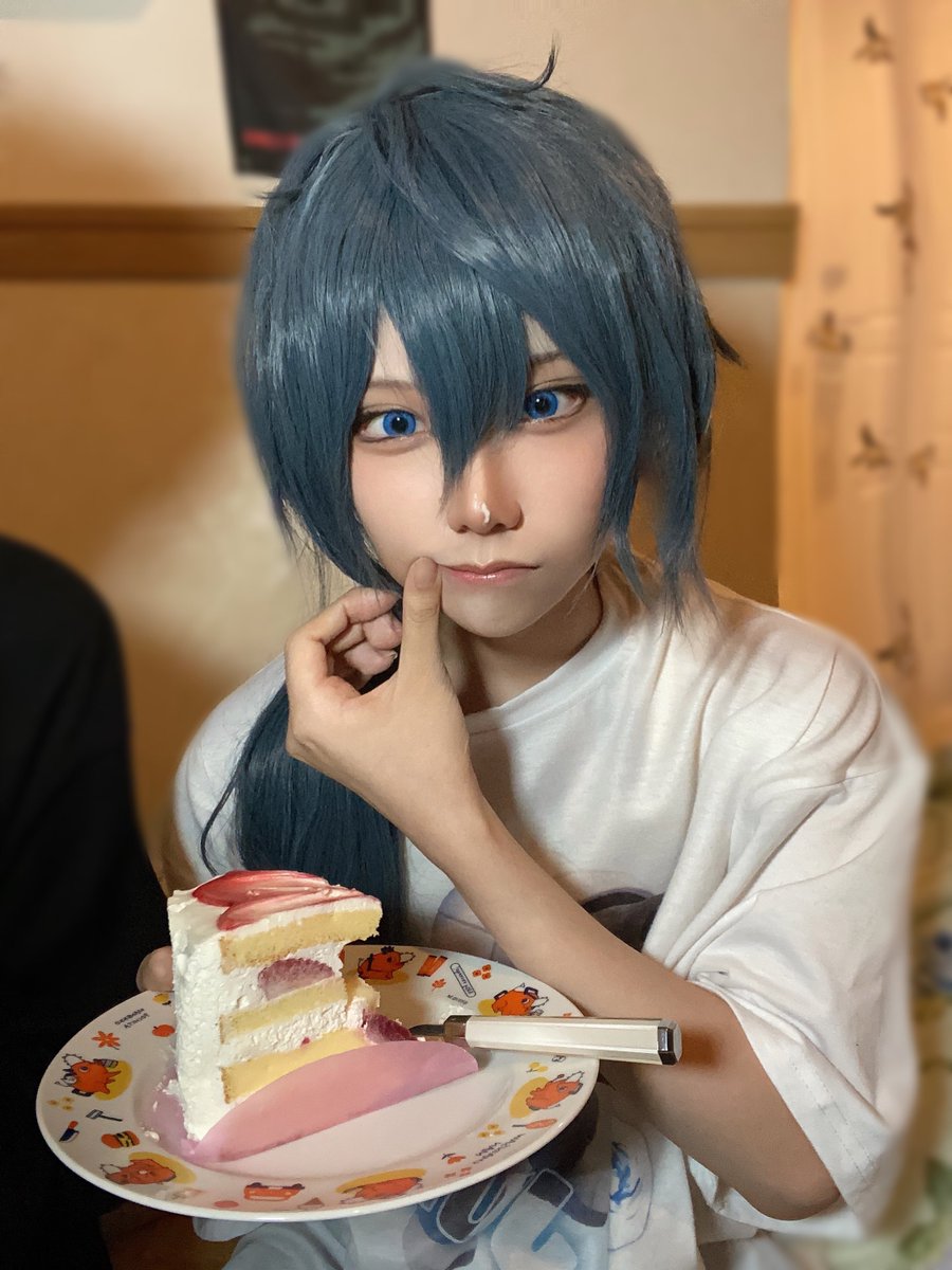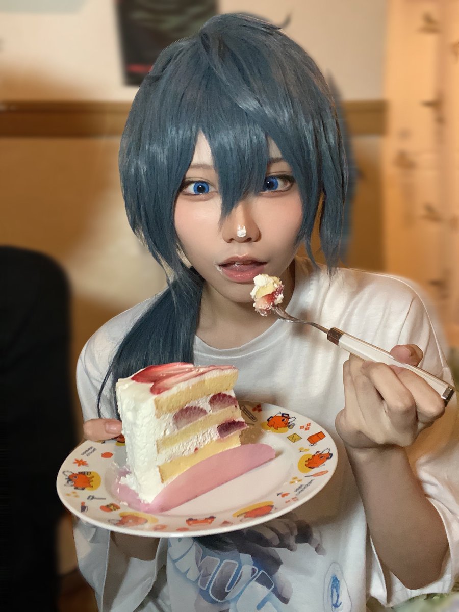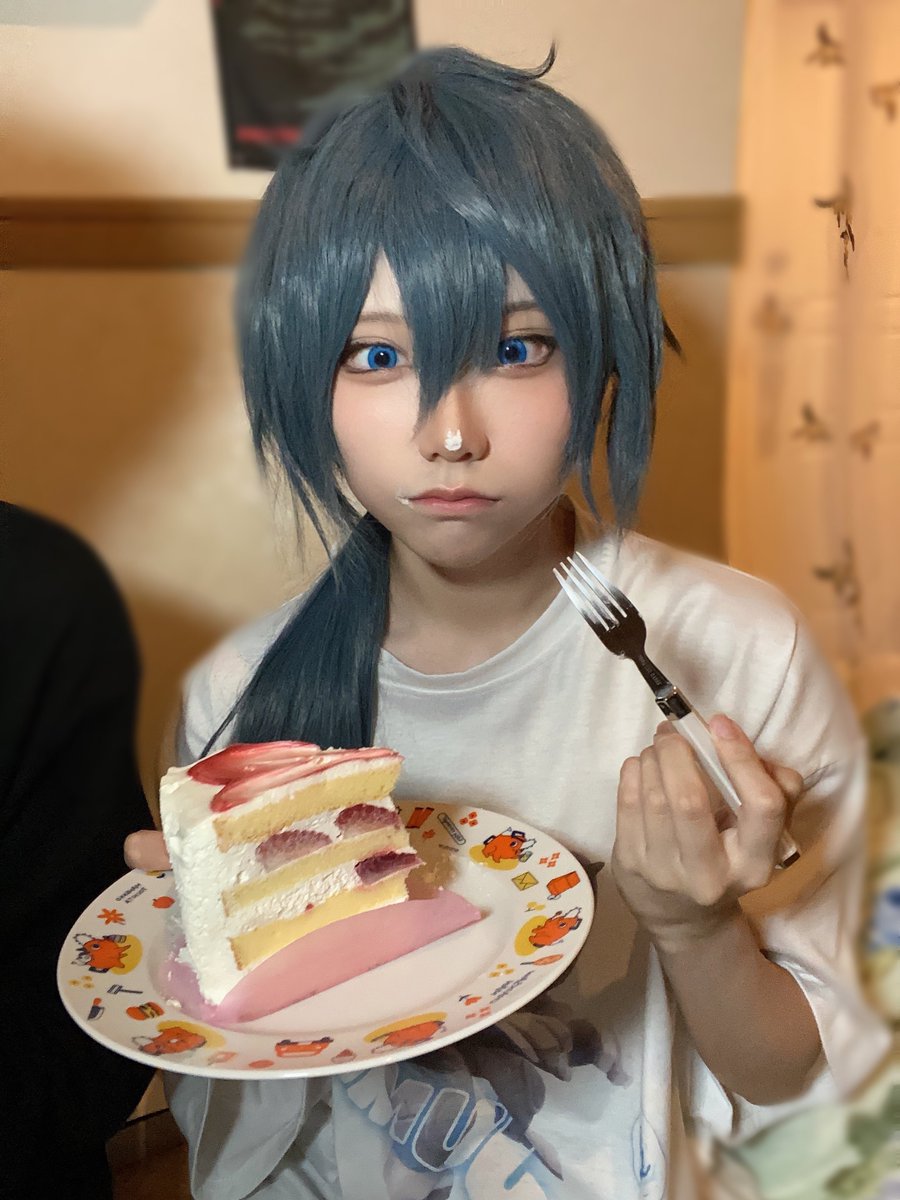 ⚠︎私服捏造コス 中の人が誕生日だったので さいががケーキ買ってくれた..🥹✊🏻💖 コスして遊んで食べました🍰♡