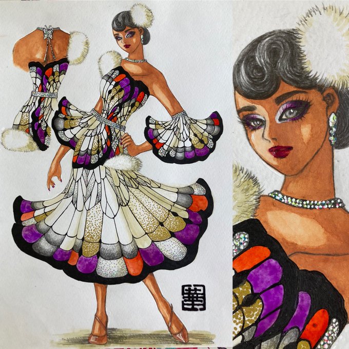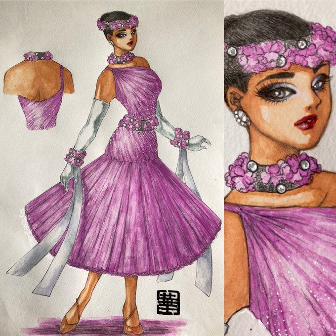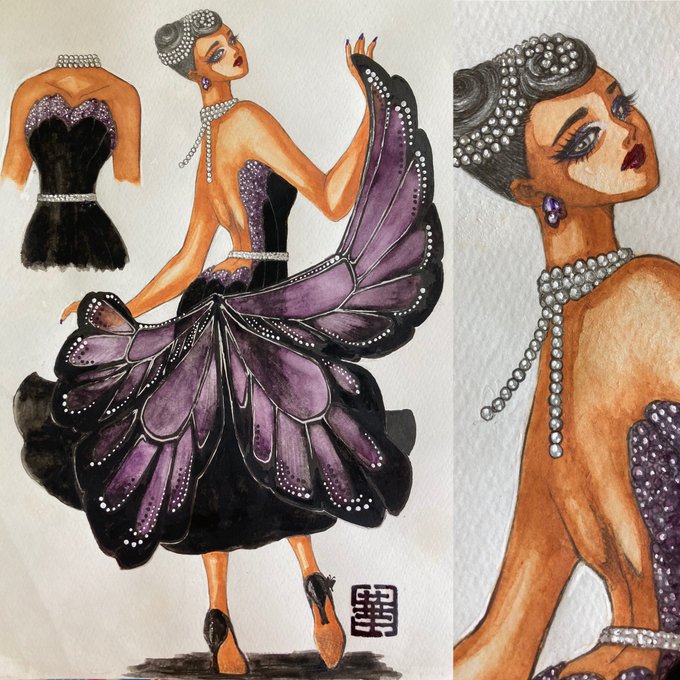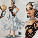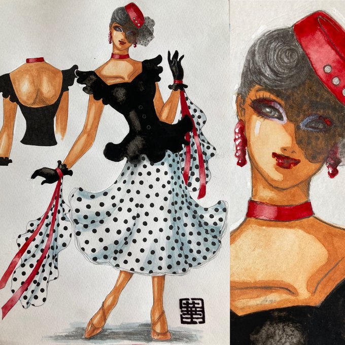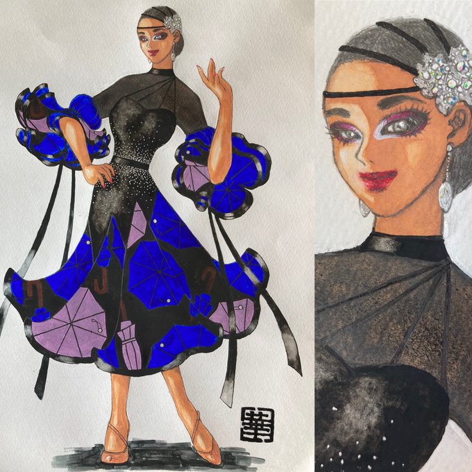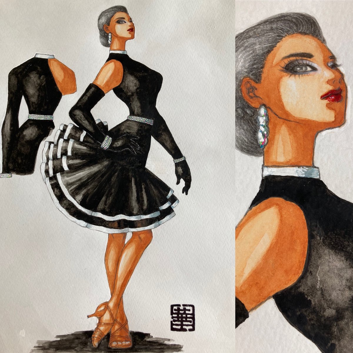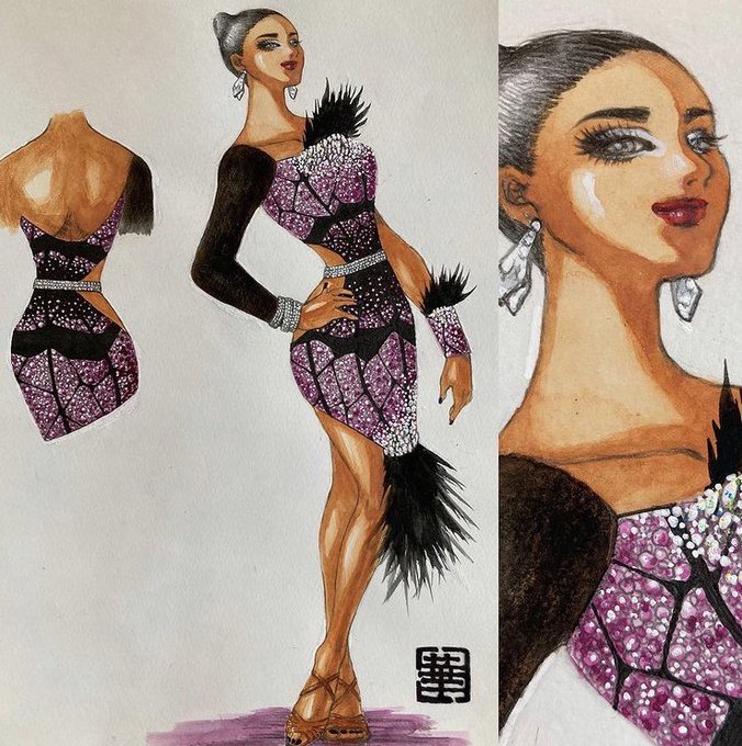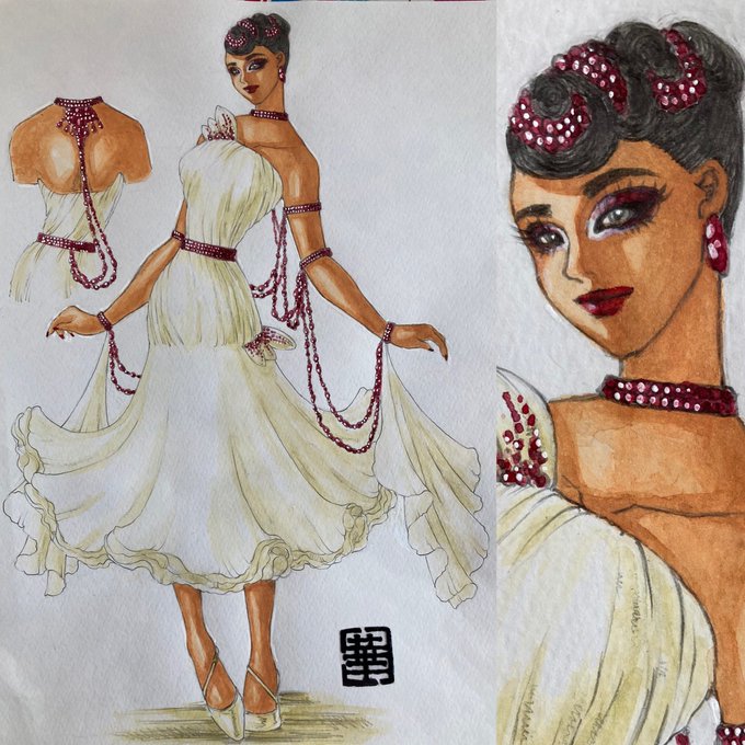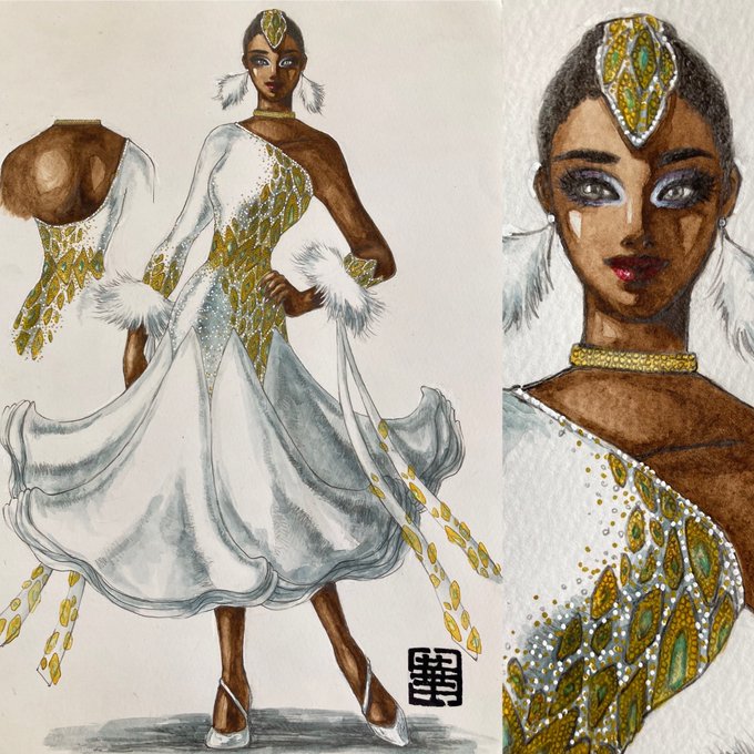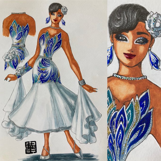 吉田ゆうこ@Butterfly10SKR 様のご依頼により描かせて頂きました! 石の配置がとても素敵✨✨✨ ありがとうございます‼︎ #イラスト #水彩画 #社交ダンス #競技ダンス #ボールルームダンス #ダンスファッション #ボールルームドレス