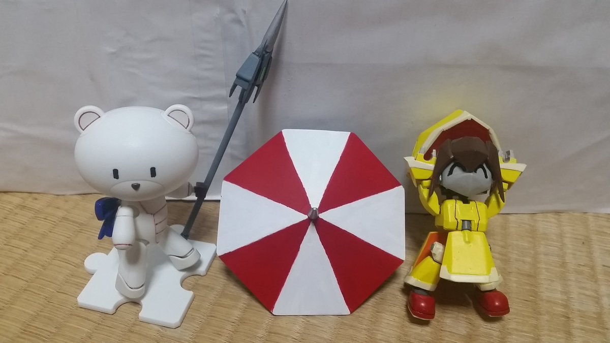 遂に完成!SDCSアンブレラちゃん!粗いところはあるものの、自分としては大満足な出来になりました♪ サイズはプチッガイとほぼ同じで、傘は差し替えで開くことが出来ます☺ #ガンプラ #ガンプラはどんな自由な発想で作ってもいいんだ