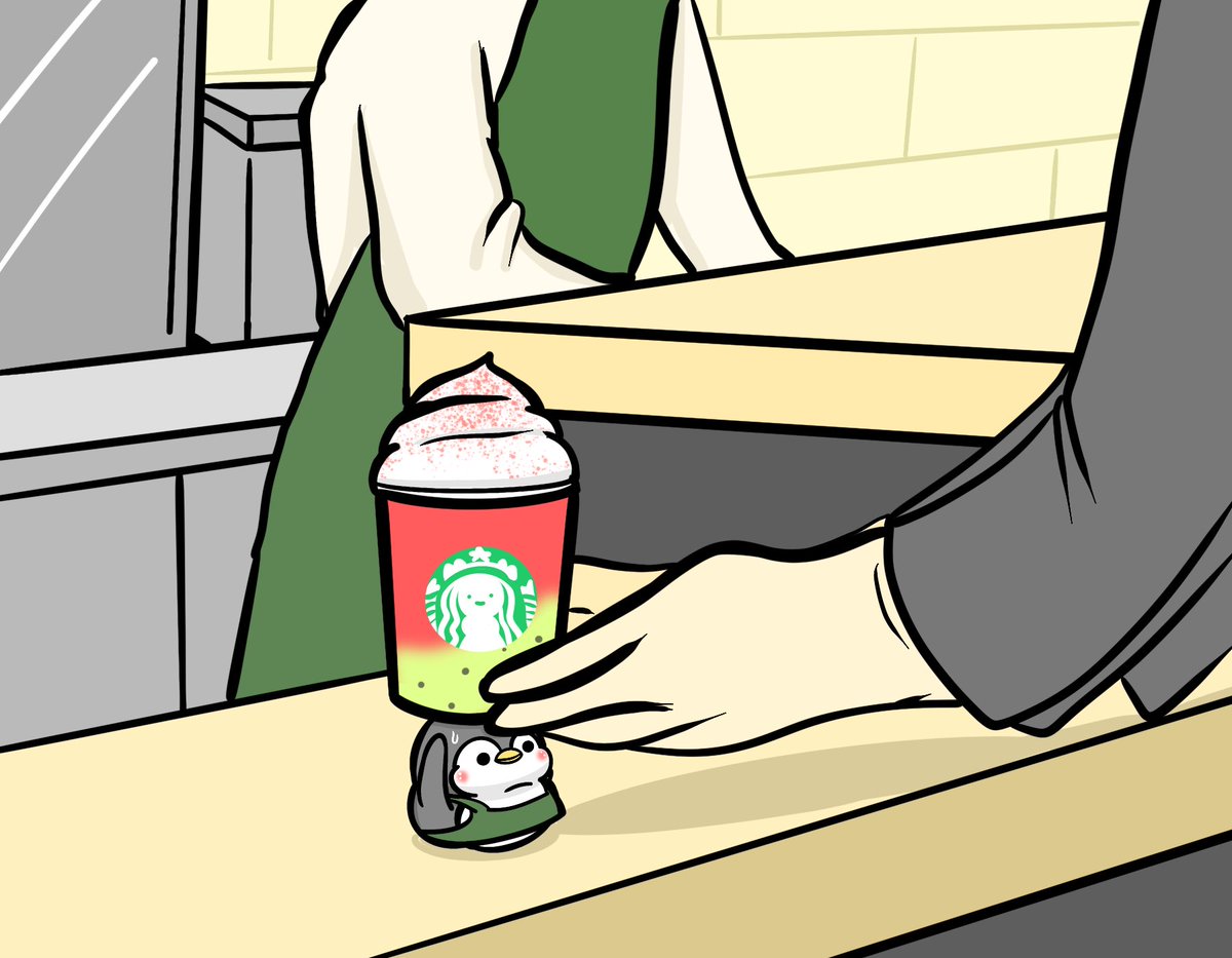 スタバでアルバイトをするペンギン ・スイカフラペチーノ