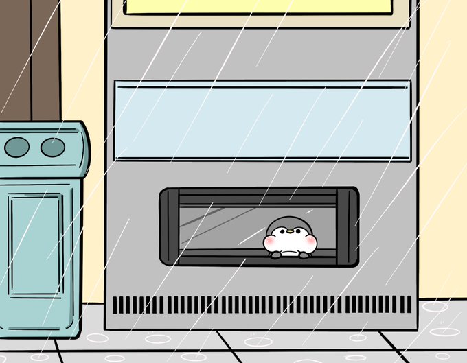 ゲリラ豪雨に見舞われたペンギン ・雷ゴロゴロ