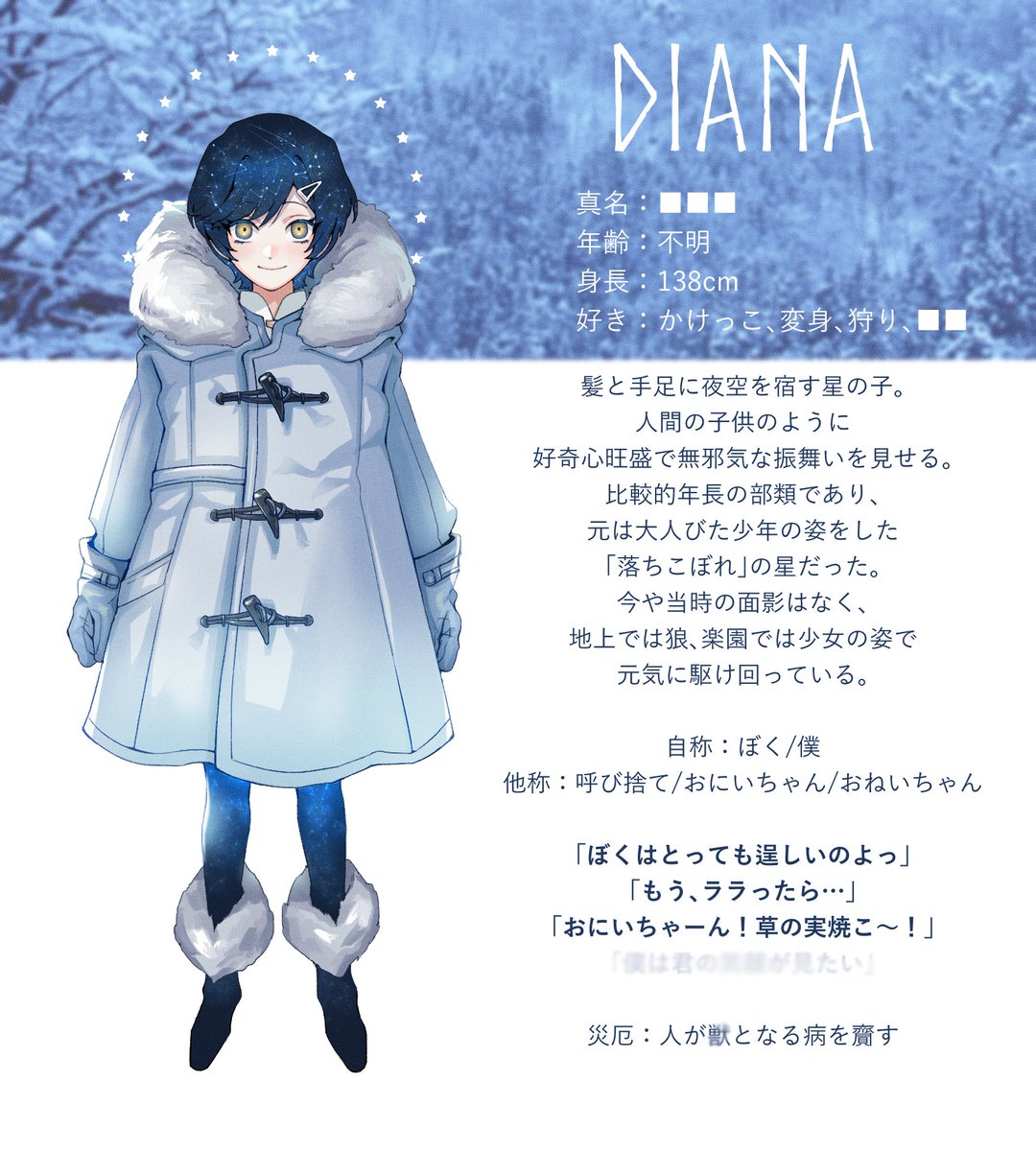 こちらの企画(@tokiniwa_)に、明るく無邪気な星の子で参加させて頂きます。 穏やかな女性の終止符とペアを組ませて頂いております。 ゆっくり更新ですが、よろしくお願いいたします! #時刻楽園_星の子_CS 個タグ:#Diana_銀の弾丸 ペアタグ:#時の子守唄