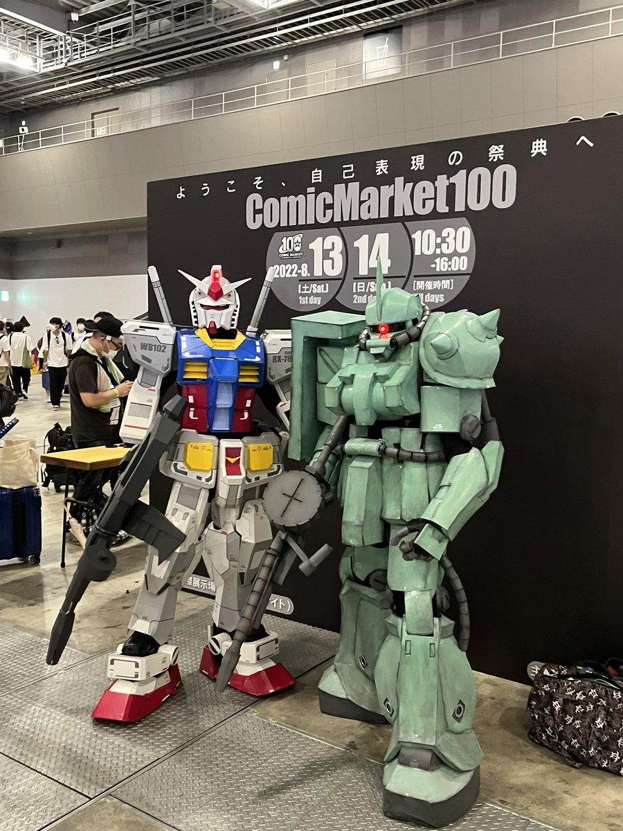 19 111 昨日僕もガンダムさんとザクさん撮らして頂いたのですが後ろの作り込みめちゃくちゃすごいので見てください #C100コスプレ 22/08/15 19:01