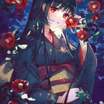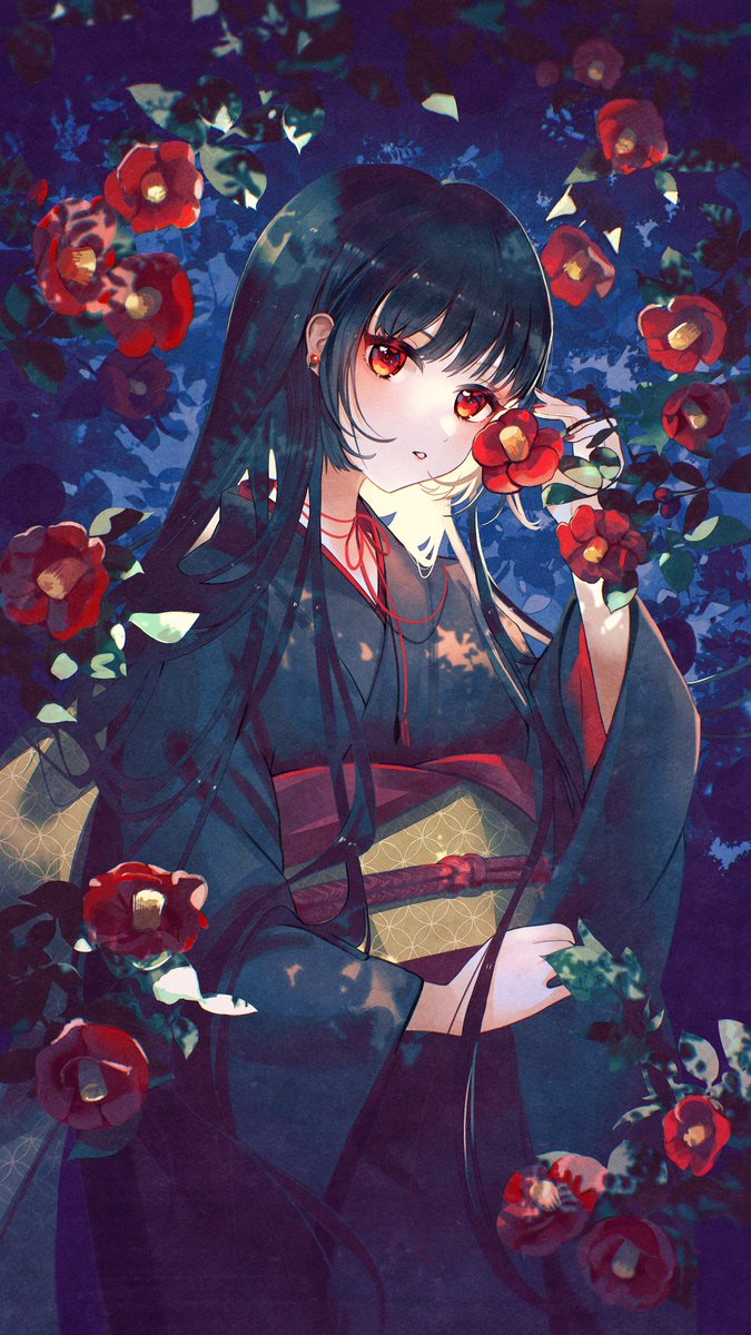 宵に咲く黒椿、