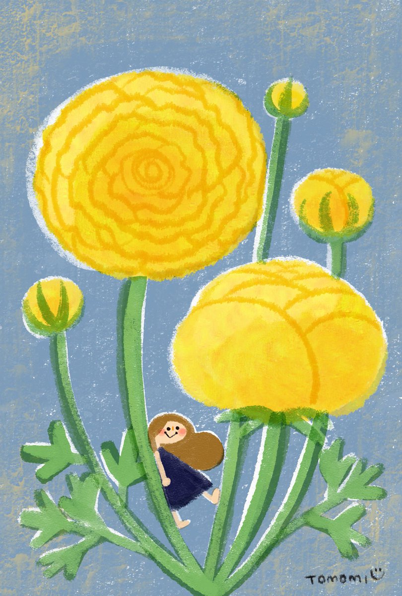 ほったらかし球根のラナンキュラスが勝手にキレイな花を咲かせてくれました😊 #イラスト #illustration #花のイラスト
