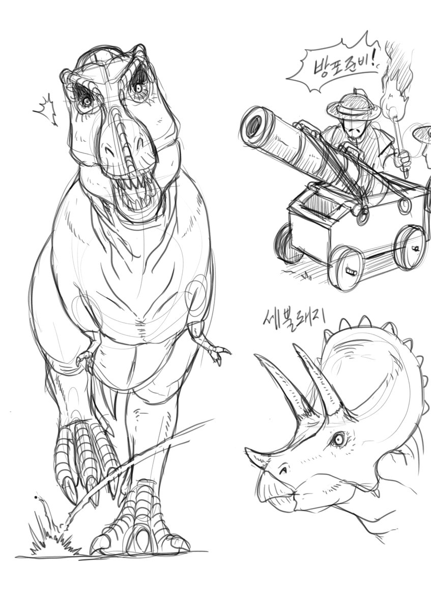 #paleoart #paleocomic #dinosaur #tyrannosaurs #triceratops ์ก์ ๊ณผ ๊ตฌ๋ ๋ฑ ์ฐ์ต ์ผ์ ๊ทธ๋ ค๋ณธ, ํธ๋ฆฌ์ผ๋ผํฑ์ค๋ฅผ ์ฌ๋ฅํ๋ ํฐ๋ผ๋ ธ์ฌ์ฐ๋ฃจ์ค. ์์์์ํ๊ฒ ์์ ์ด ๋์ ๋ง์กฑ์ค๋ฌ์ ์ต๋๋ค ใ ใ ใ