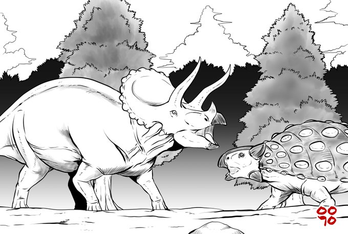 #paleoart #dinosaur #triceratops #ankylosaurus ์์ ์ ์์ญ์ ๋ํ๋ ์ํฌ๋ก์ฌ์ฐ๋ฃจ์ค๋ฅผ ์ํํ๋ ํธ๋ฆฌ์ผ๋ผํฑ์ค. ์ํ๋ฆฌ์นด์์ ์ฝ๋ผ๋ฆฌ๋ ์ฝ๋ฟ์ ๋ฑ์ด ๋ค๋ฅธ ์ด์๋๋ฌผ์ ์ํํ๊ฑฐ๋ ๊ณต๊ฒฉํ๋ ๋ชจ์ต์ ๋ณด๊ณค ํ๋๋ฐ, ์ค์๋์์๋ ์ด๋ฐ ๋ชจ์ต์ด ์์ง ์์์๊น ์ถ์ด ๊ทธ๋ ค๋ดค์ต๋๋ค.