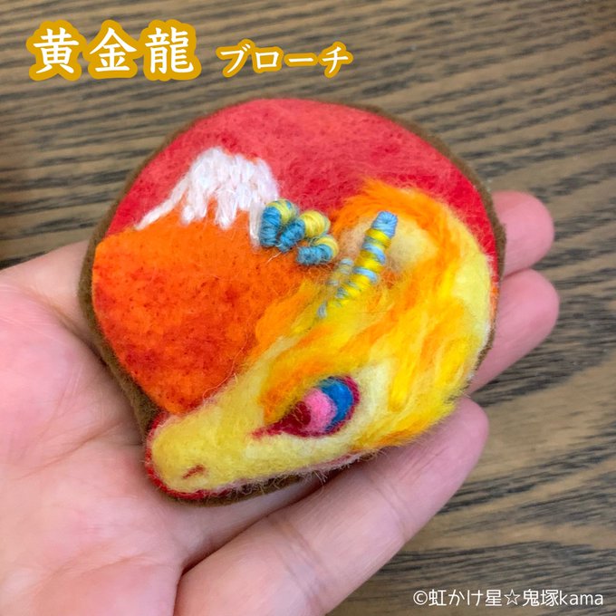 #虹かけ星の羊毛講座お知らせ 明日4/22はヴォーグ学園 横浜校 🐉黄金龍の初日は手慣らしでブローチです 新規の方は #羊毛フェルト の針やスポンジ用意してます 昼食は隣ビルのファミマなどで買うか弁当持参し、教室で食べられます ※ヴォーグ学園は感染症対策をしつつ開催