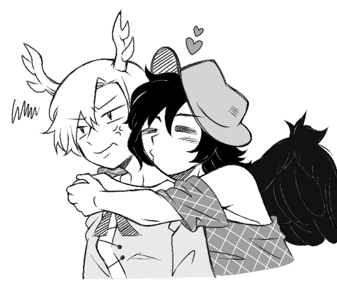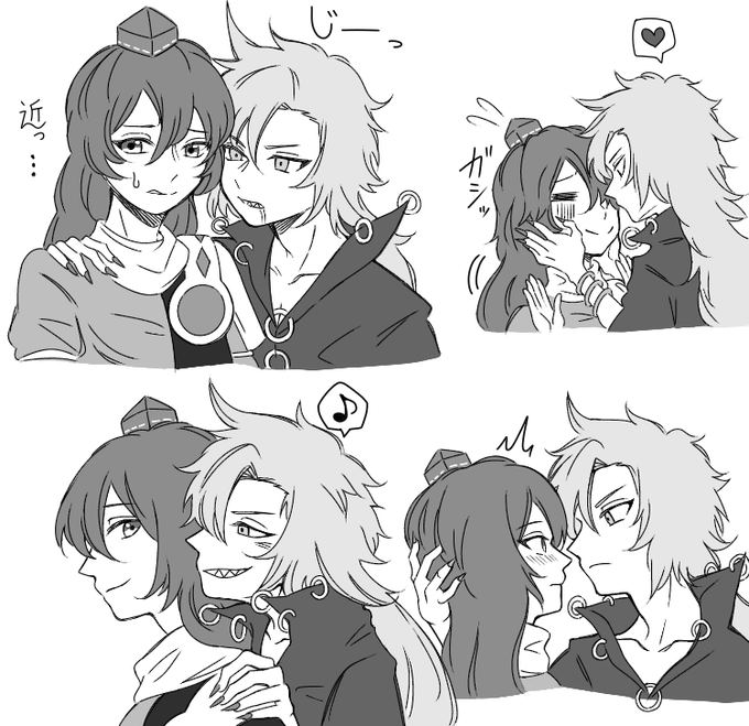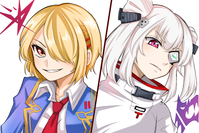 (魅鬼) 姉と弟のリクエストに応えて、今遊ばせてもらっているゲームの、月歌と山脇様を描いてみました❗️ #へブバン #茅森月歌