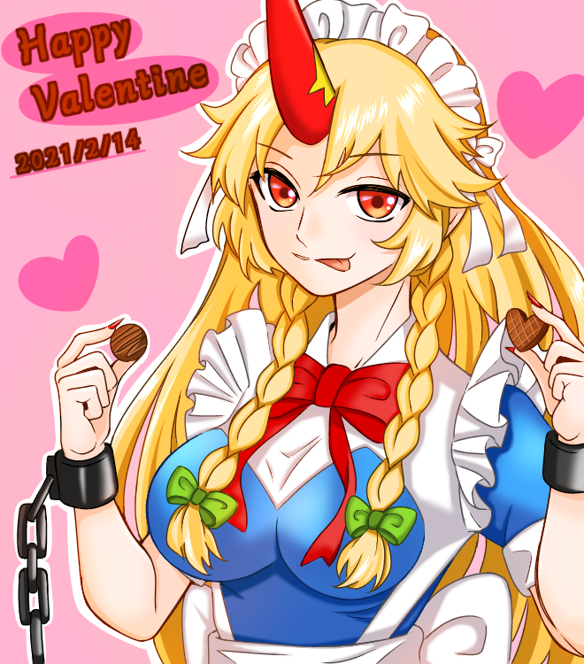 14 47 (魅鬼) Happy Valentine‼️🍫 ということで、東方ロストワードの勇儀姐さんのメイド服が可愛すぎたので、描かせて頂きました🤩 21/02/14 00:33