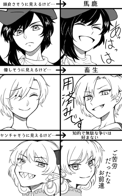(魅鬼) さきやちゆーまの偏見風に、自己紹介描いてみた🐴🐢🐏