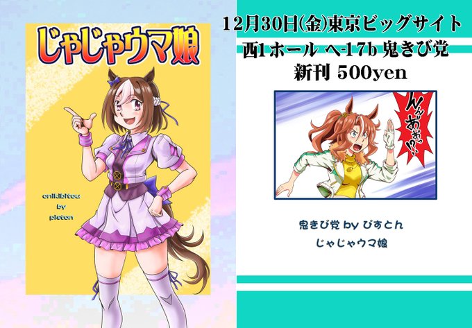 鬼きび党はコミックマーケット101で金曜日西地区 へ-17bに配置されました 奇跡的に受かりました、ウマ娘サークルの島へ! トレーナーのみなさんよろしくお願いします webcatalog.circle.ms/Circle/1681572… #C101WebCatalog