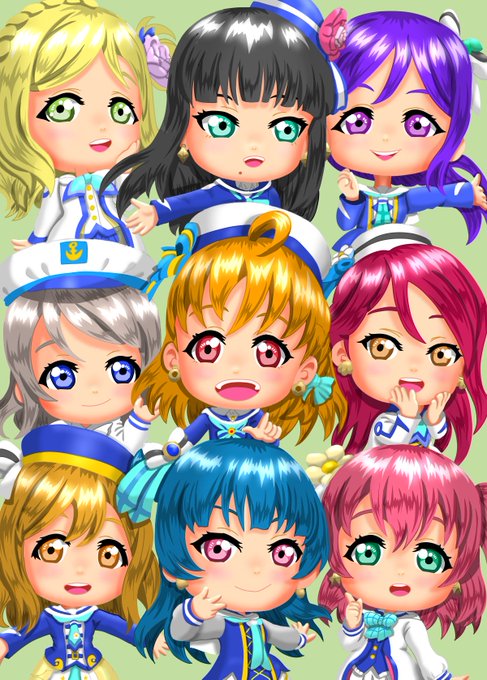 「ちゃんと差分も描いてたのだ」 Aqoursに自分の誕生日を祝ってもらおうと描いた似顔絵。 他のお祝いでも使えるようになっているのだ〜 twitter.com/oniking202/sta…