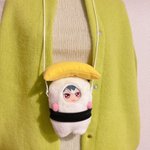 ぬい寿司着用例です🍣 えびはピン🧷で付いているので、取り外し可能です。お好きな付け方をしてください☺️ シャリはえびとたまご共通で裏面牡蠣🦪です!