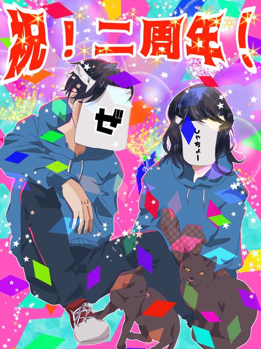 2 11 遅くなったけど2周年おめでとう🥳🥳🥳 これからももっと楽しんでいこうぜ!!🥳🥳🥳🥳🥳 #ねこぜ2周年 #イラスト @Nekoze_nekoze_ 22/11/27 00:26