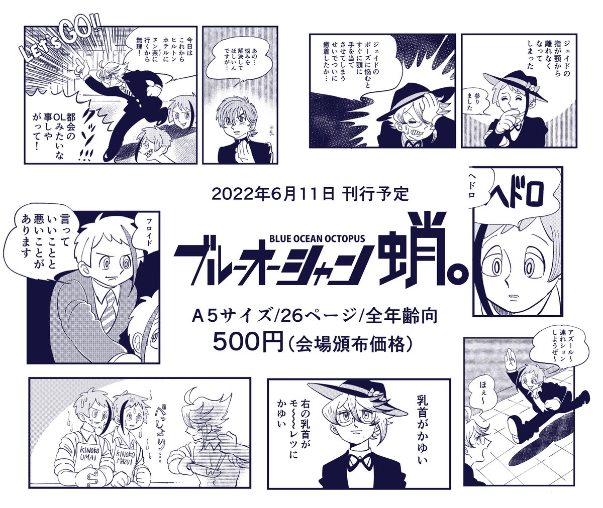 🌈🐙6/11イベント合わせ新刊🐙🌈 突如、半世紀前の某有名レトロ漫画にハマった奴の思いつきの本です❗️ 🐚寮3人のドタバタ短編ギャグ漫画集。 正直ほぼカプ要素はないと思いますが、イドアズ好きが描いたものなので、気になる方はご慎重にどうぞ❗️ 👇通販予約はコチラ👇 ecs.toranoana.jp/joshi/ec/item/…