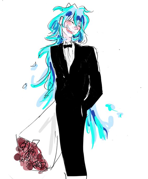 卒業してからイベントか式かで監督生久々にと会って 「変わってなくてウケるっすわ〜」 とかいいながら安心しきった笑顔見せるイデア様 (花は主催者にあげる物で持たされてる)(?) #twstファンアート